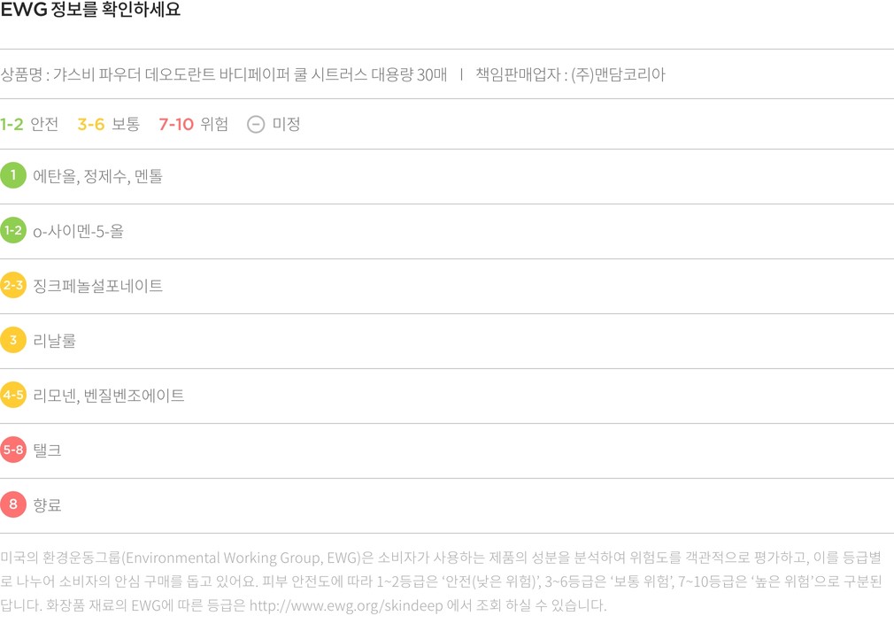 데오도란트 샤워 티슈 파우더 쿨 시트러스・ 개수:1팩(30매)