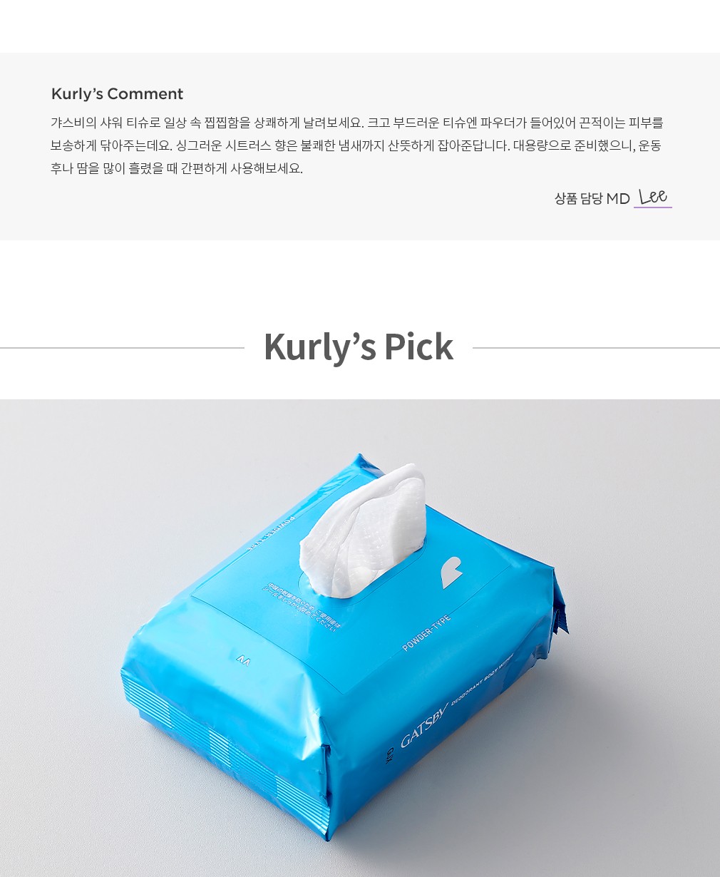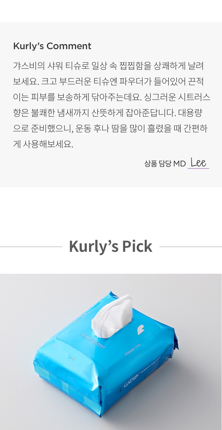 ・ 특징:끈적이는 피부를 보송하게 닦아주는 티슈입니다.