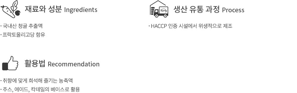 청귤의 상큼한 매력을 담아 완성한 청숨의 통째로 갈아만든 청귤을 소개할게요. 국내산 청귤 추출액을 사용해 싱그럽고 산뜻한 풍미가 오롯이 살아있답니다. 여기에 프락토올리고당을 더해 은은한 단맛이 돋보이지요. 물이나 탄산수 등 취향에 맞게 희석해 즐겨보세요. 칵테일의 베이스로 활용하기에도 제격일 거예요.