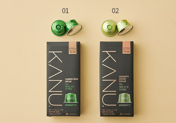 01. 캡슐 커피 디카페인 (카누머신 전용) (케어링 스타)・중량:1박스(9.5g X 10개)