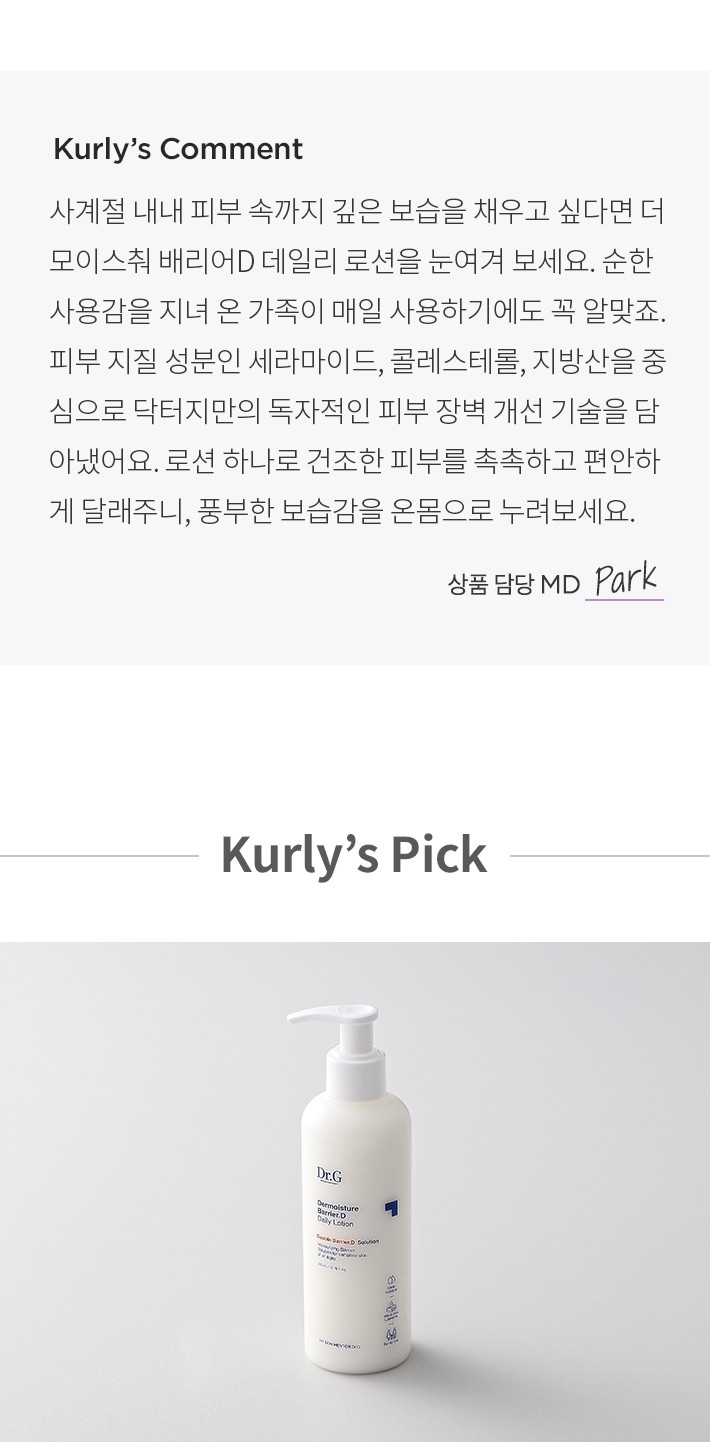 ・ 특징:피부 깊숙이 풍부한 보습감을 선사하는 로션입니다. 순한 사용감으로,어린 아이부터 성인까지 온 가족이 함께 사용하기 좋아요.
