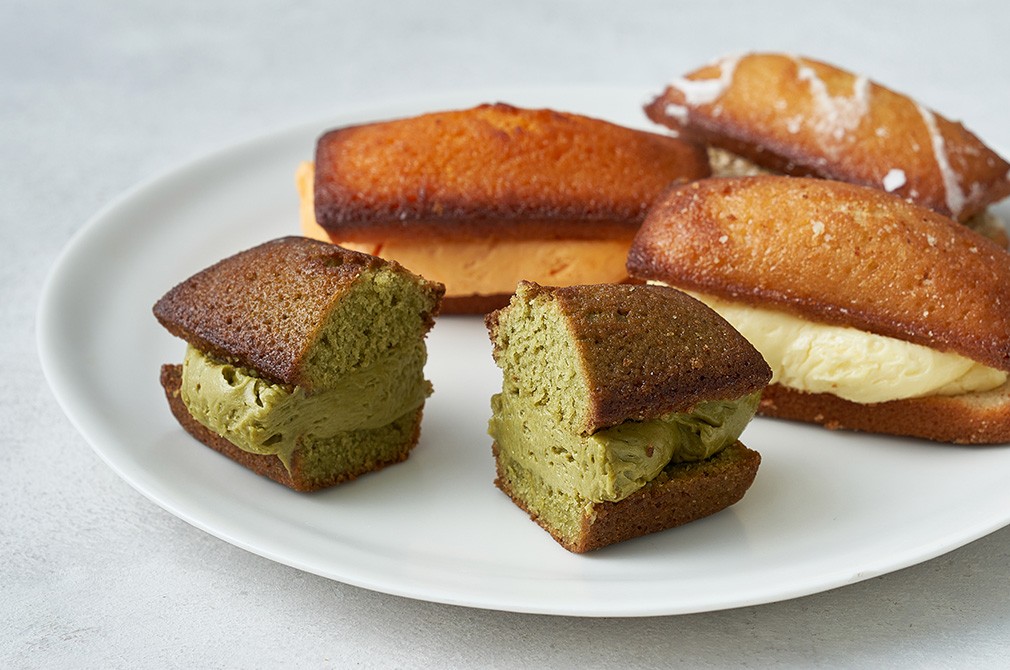 ・특징:국내산 녹차가루를 넣은 휘낭시에 사이에 녹차커스터드 필링을 채워 완성했어요. 향긋하고 쌉싸름한 매력이 돋보입니다.
