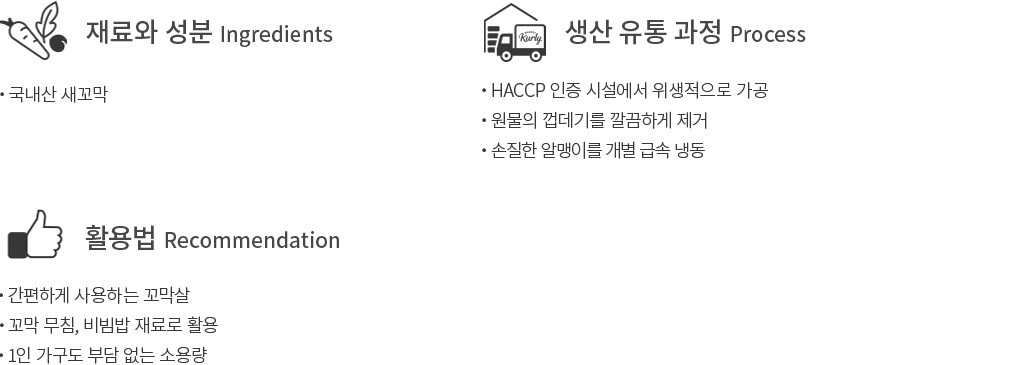 새꼬막의 붉은 빛 속살은 쫄깃한 식감과 담백한 감칠맛이 일품이지만,특유의 두껍고 단단한 껍데기 손질은 언제나 막막한데요. 청정 남해의 신선한 수산물이 모여드는 브랜드,보물섬이 선보이는 새꼬막살을 만나보세요. 남해에서 채취한 새꼬막을 꼼꼼히 선별한 뒤,먹기 좋게 껍데기를 제거했어요. 새꼬막의 살을 개별 급속 냉동한 덕에,나중에 꺼내 쓸 때에도 한 알씩 깔끔하게 떨어진답니다. 매콤한 양념을 더하면 금세 꼬막 무침을 완성할 수 있고요. 꼬막 무침을 밥 위에 얹어내 꼬막 비빔밥으로 즐겨보아도 좋을 거예요.