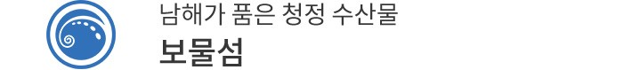 봄이면 멸치떼가,가을이면 전어와 우럭이 때 맞춰 돌아오는 우리 땅 최남단의 바다. 미 FDA도 청정해역으로 판정할 만큼 맑고 깨끗한 남해에서는 철마다 싱싱한 수산물이 그물에 걸려듭니다. 수산물 유통의 새로운 길을 여는 브랜드,보물섬으로 모여든 남해의 수산물을 만나보세요. 전복과 어패류,생선 등 남해에서 나는 모든 것들을 안심할 수 있는 먹거리로 선보이고 있어요. 활어·패류가 우리 식탁에 오르기까지의 유통 과정을 끊임없이 고민하고 연구하면서,신선하고 바른 먹거리를 공급할 수 있도록 최선을 다하고 있죠. 풍요롭고 비옥한 바다에서 자라 더욱 건강하고 신선한 남해의 수산물,보물섬을 통해 바른 먹거리로 만나보세요.