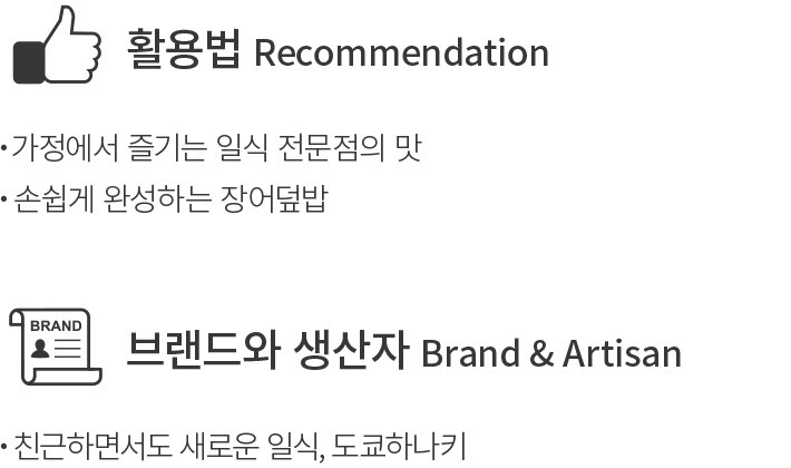 ・특징:큼지막한 장어가 통째로 올라간 일식 덮밥을 완성할 수 있어요. 필요한 모든 재료를 담았으니 밥만 따로 준비해 주세요.