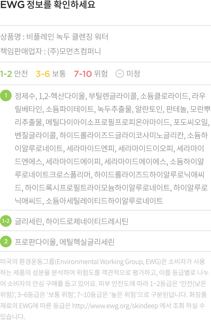 ・ 특징:세정력이 뛰어난 녹두추출물을 담은 클렌징 워터예요. 노워시 타입으로,촉촉하고 개운하게 마무리됩니다.