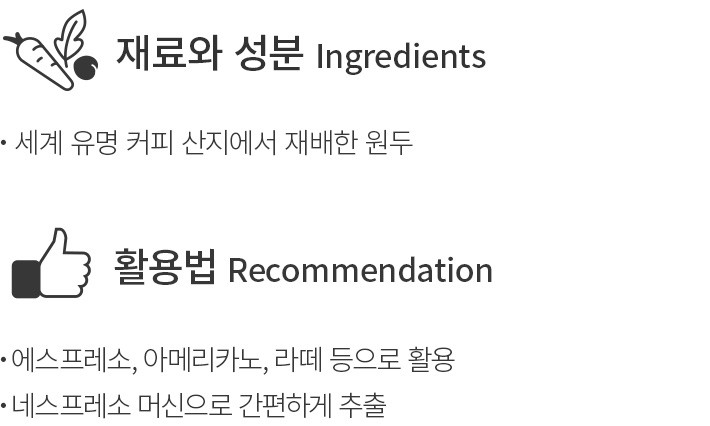・특징:견과의 고소한 풍미와 은은한 단맛이 매력적인 커피입니다. 늦은 밤에도 편안하게 마실 수 있어요.