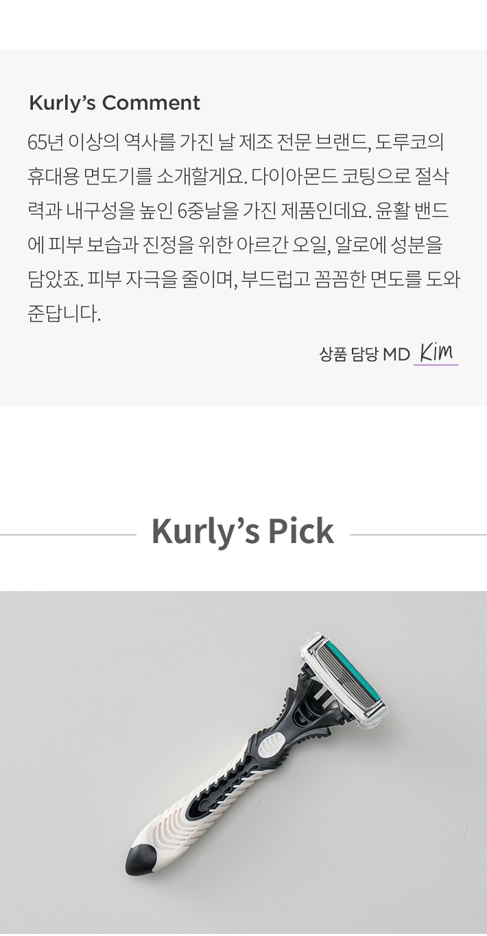 ・ 특징:정교한 6중날과 보습 성분으로 꼼꼼하고 편안한 면도를 도와줍니다.