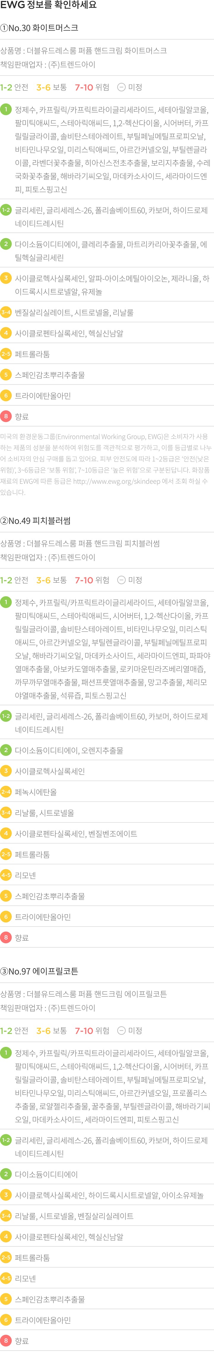퍼퓸 핸드크림 3종 세트? 구성 :①No.30 화이트머스크,②No.49 피치블러썸,③No.97 에이프릴코튼