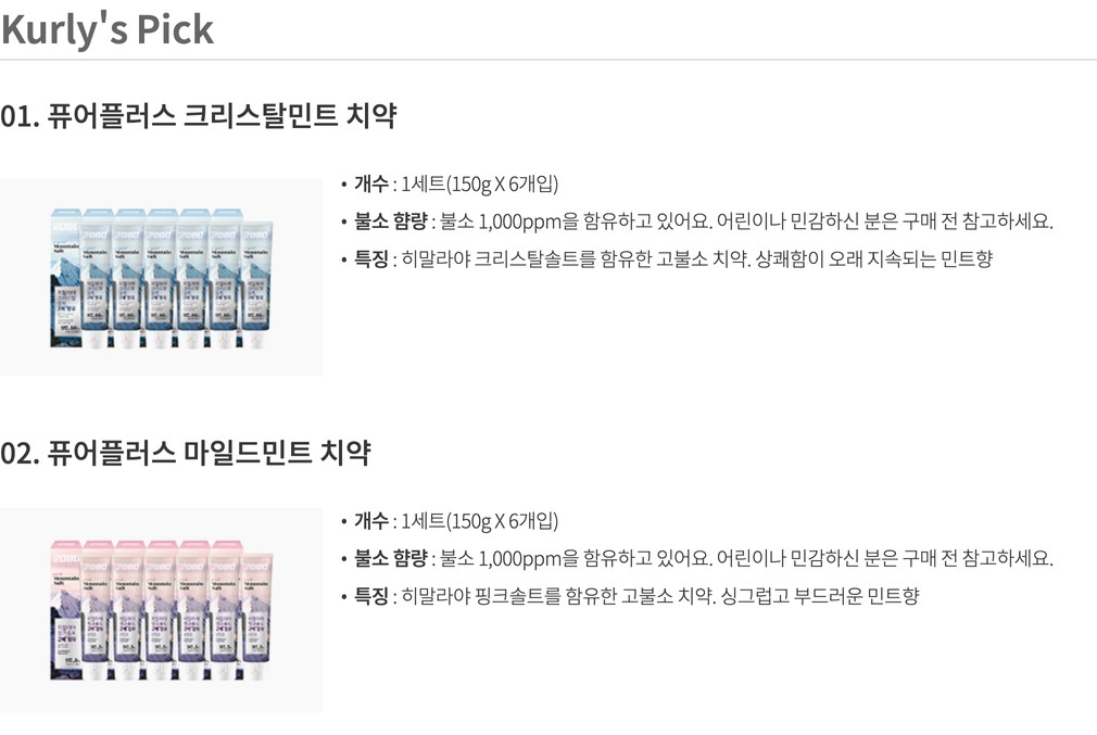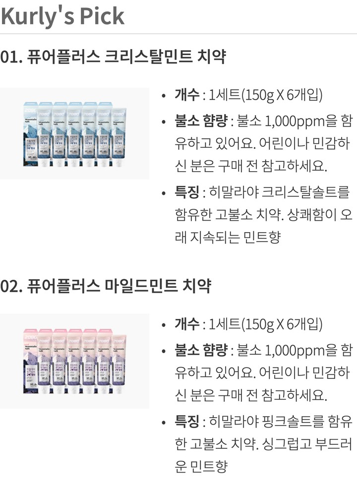 [2080] Pure Plus Toothpaste 150g x 6 Packs (2 Types) (Choose 1)