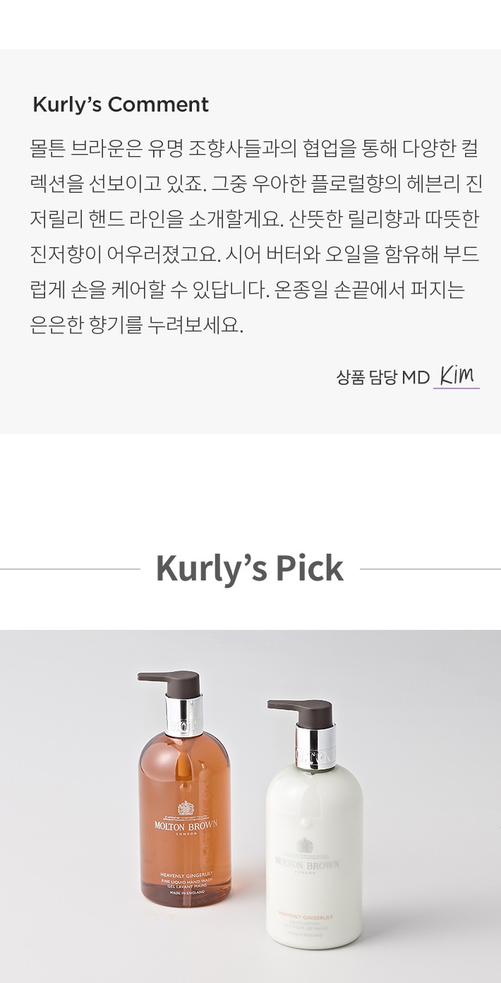 ・ 특징:릴리의 우아한 향에 진저의 상큼함을 더한 핸드 워시입니다.