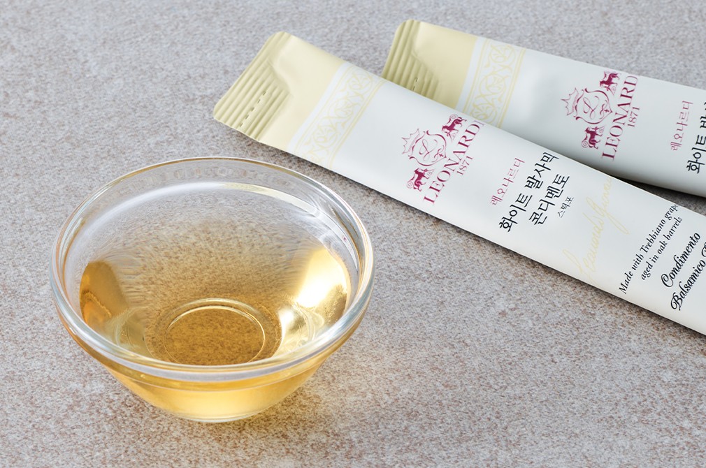 - 특징: 백포도로 만들어 밝은 호박색을 띠는 아름다운 발사믹이에요. 화사한 새콤달콤함을 느낄 수 있으며 스틱형으로 어디서나 간편하게 즐길 수 있답니다.