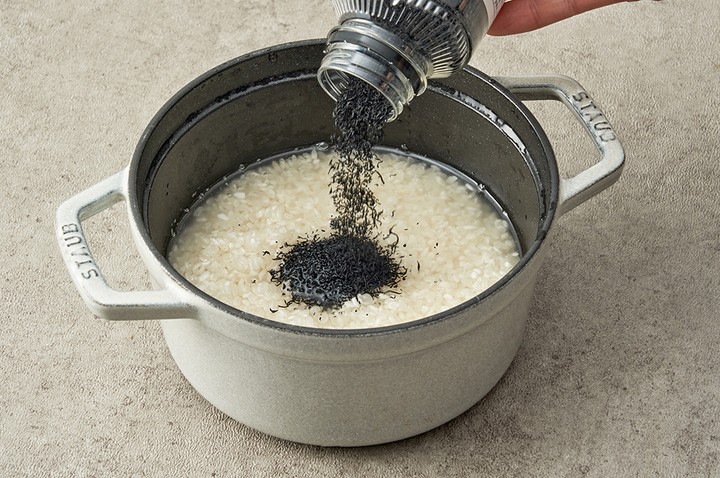 ?밥을 지을 때,다시마 플레이크를 미리 물에 불리지 않아도 돼요. 건조된 상태 그대로 불린 쌀 위에 골고루 뿌린 뒤 섞어주세요.