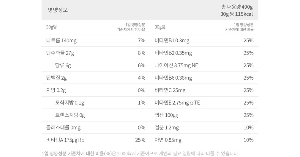 ?특징:국내산 쌀로 만든 시리얼로,튀기지 않고 구워 완성했어요. 1번에 30g씩 섭취했을 때,약 16회를 즐길 수 있는 양입니다.