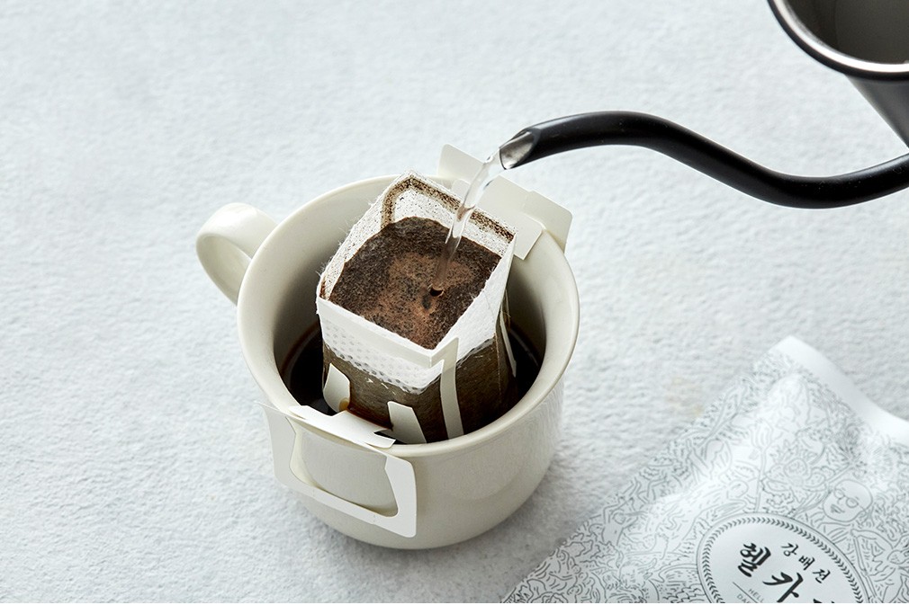 ・특징:강배전으로 진하게 볶아낸 시그니처 블렌드 드립백이에요. 쌉싸래하고 강렬한 향미가 묵직하게 맴돌아요.