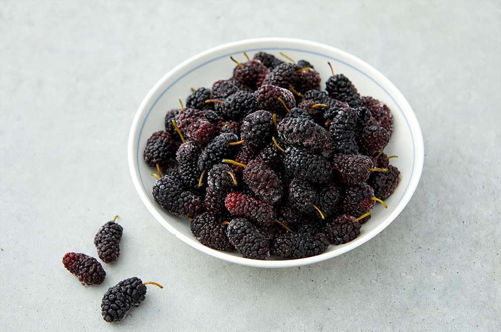 탐스럽게 차오른 검붉은빛 열매 냉동 오디