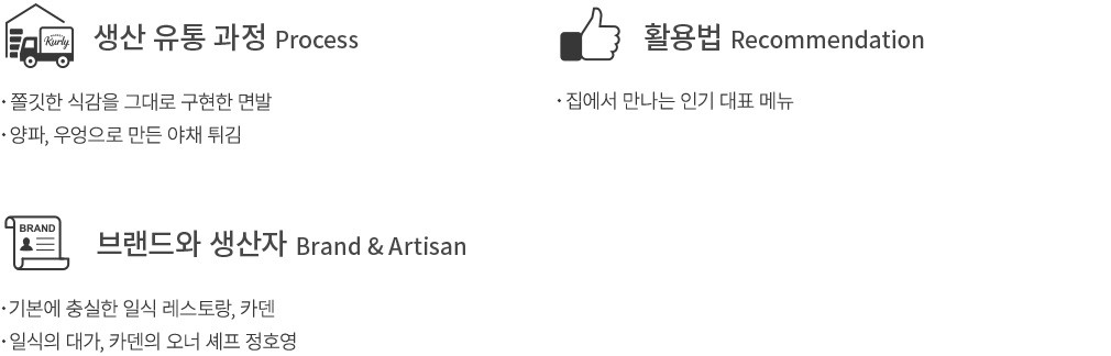 ・특징:세프의 레시피를 그대로 구현해 만든 상품이에요. 튀김을 국물에 푹 적시면 매장의 감동을 그대로 즐길 수 있답니다.