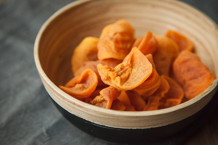 감말랭이:감의 껍질을 벗기고 4조각 이상으로 쪼개어 씨를 제거한 후 수분 40% 정도로 건조한 것을 말합니다. 처음부터 씨가 없는 품종의 감을 사용하기도 합니다.