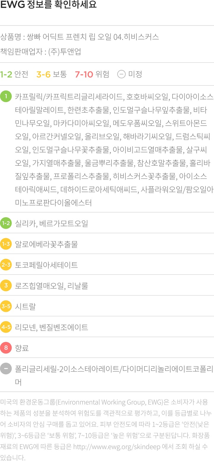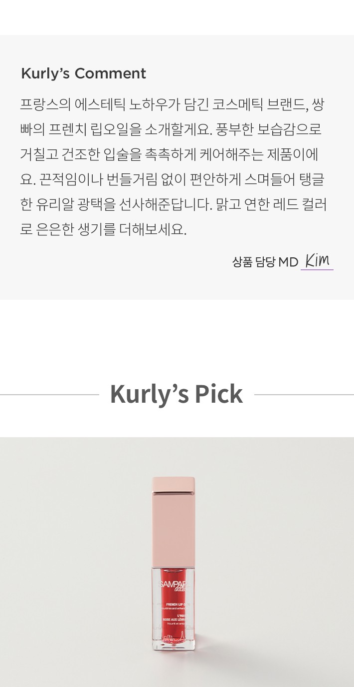 ・특징:거칠고 건조한 입술에 풍부한 보습감을 선사하는 립오일입니다. 연한 레드 컬러로 은은한 생기를 더해줘요.