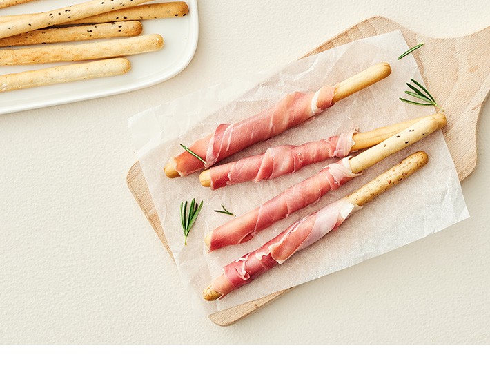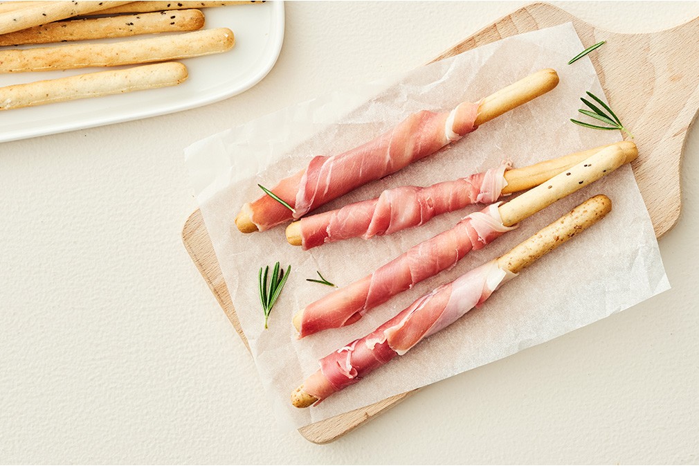 이렇게 활용하세요?브래드스틱에 프로슈토 햄이나 하몽을 돌돌 말아 즐겨 보세요. 간단하게 근사한 와인 안주를 완성할 수 있습니다.