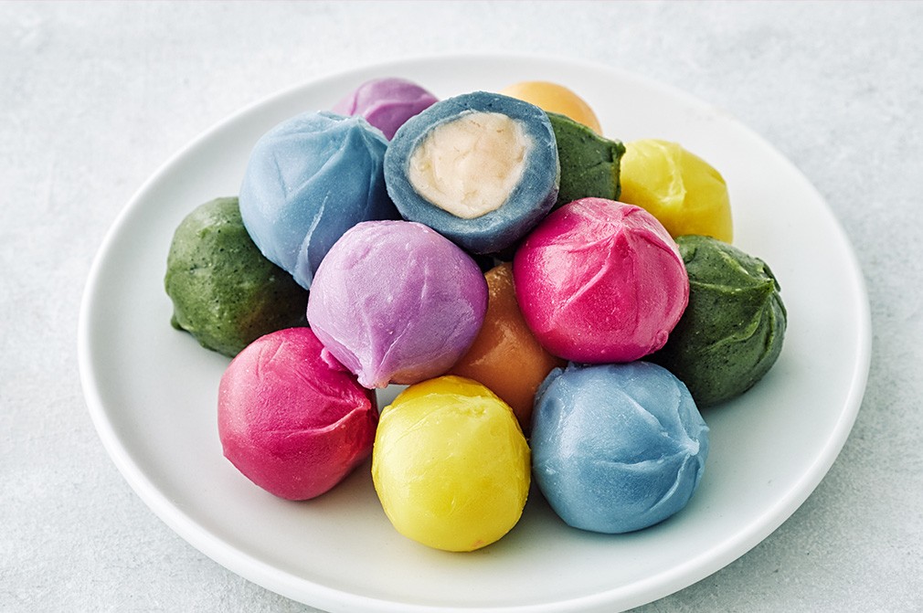 일곱 가지 무지갯빛으로 사랑스럽게 완성한 예향의 말랑 과일떡을 소개합니다. 국산 멥쌀로 말랑말랑 쫀득하게 빚어낸 떡 속에 딸기,유자 등 달콤한 과일 앙금을 채워 만들었어요. 한입을 베어 물면,부드러운 앙금과 상큼한 과일 맛이 입안 가득 번져 오죠. 차갑게 드셔도 아주 맛있으니,상온에서 살짝만 해동해 그대로 드셔 보세요. 그릇에 색색이 꺼내어 놓기만 해도 근사한 다과상을 완성할 수 있을 거예요.