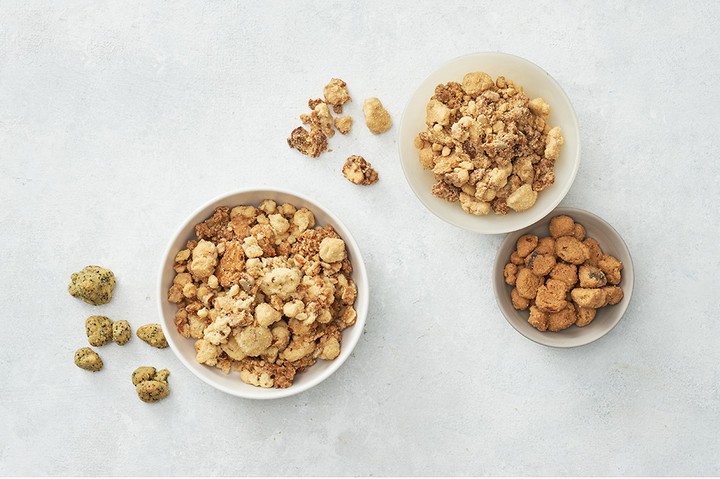 아이슬란딕 요거트로 유명한 룩트에서 색다른 매력의 그래놀라를 선보입니다. 국산 귀리와 통밀에 땅콩버터,인절미 가루 등의 다양한 재료를 더해 완성한 그래놀라인데요. 쿠키처럼 바삭바삭한 식감과 고소한 풍미가 돋보여요. 비정제 사탕수수나 메이플 시럽으로 더한 자연스러운 단맛 역시 참 매력적이죠. 한입에 넣기 좋은 크기로 작게 뭉쳐져 있어 요거트에 토핑으로 얹어 먹거나 가벼운 간식으로 즐기기 딱 좋답니다. 소보로,흑임자,얼그레이 등 5가지 종류의 그래놀라와 시리얼을 준비했으니 취향에 따라 선택해 보세요.