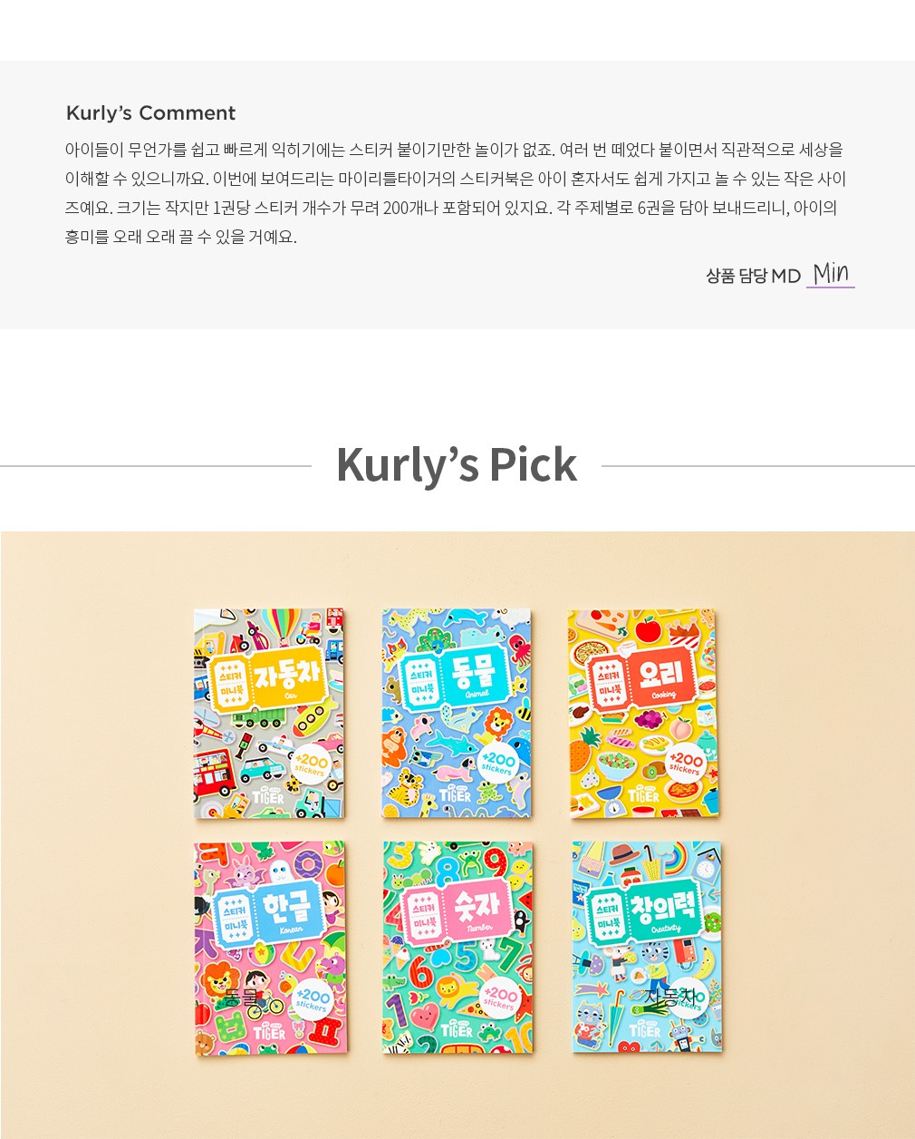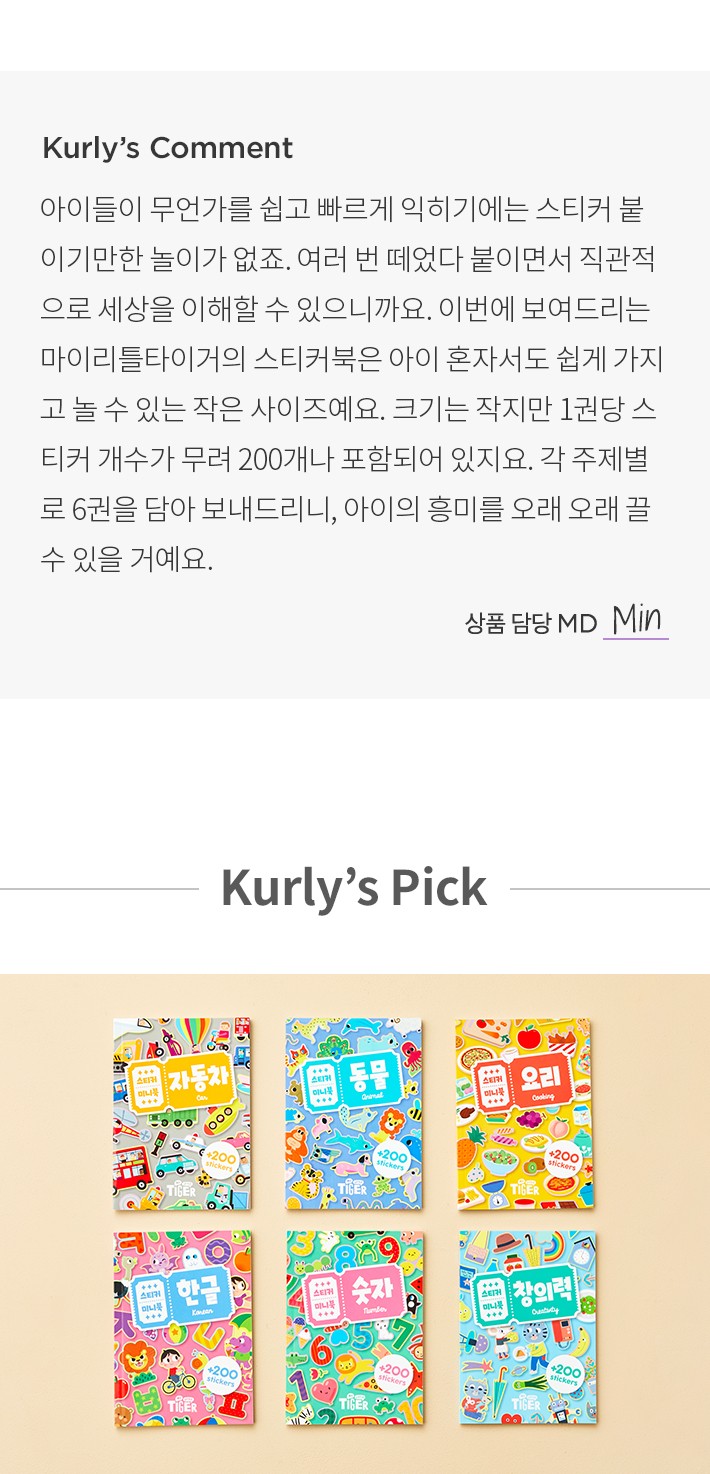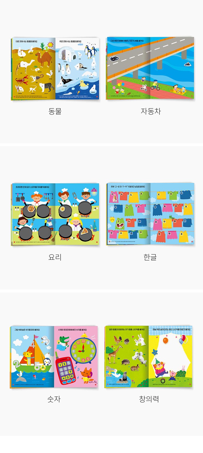 타이거 스티커 미니북 6종 세트 ?구성:①자동차,②동물,③요리,④한글,⑤숫자,⑥창의력