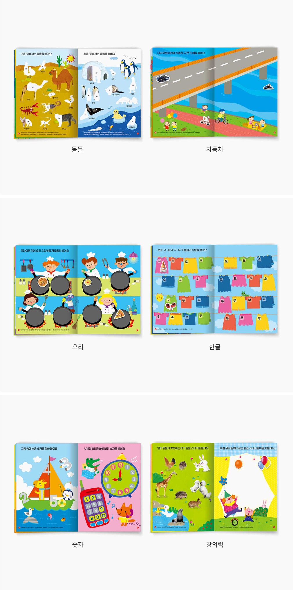 ?특징:각 주제별 스티커북 6권을 함께 보내드리는 세트입니다. 붙였다 뗄 수 있는 스티커가 한 권에 200개 이상 들어있어요.
