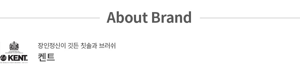 켄트는 영국에서 200년 넘게 브러쉬만을 고집스럽게 만들어 온 브랜드입니다. 1777년에 설립되어 헤어 브러쉬부터 의류 관리용,면도용 브러쉬 그리고 칫솔까지 브러쉬만을 전문적으로 제조해왔습니다. 영국의 전통에 기반한 전문성을 바탕으로 조지 3세 때 영국 왕실 납품권인 로얄 워런트를 획득하며 그 품질을 인정받았어요. 켄트의 명성은 영국 제조 기술의 전통을 계승하고,값싼 원재료와 타협하지 않은 채 세계적인 수준의 품질을 고집하는 장인정신에 기반합니다. 현재 영국의 유명 백화점인 셀프리지,존루이스,헤롯에 입점되어 있으며,전 세계 50개국으로 제품을 수출하고 있습니다.