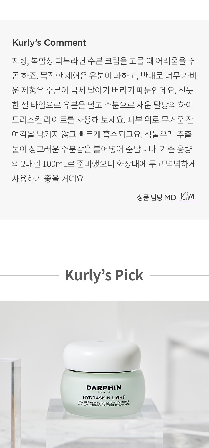 ・ 특징:잔여감 없이 수분만 남기는 수분 크림이에요. 지성,복합성 피부인 분에게 추천드려요.