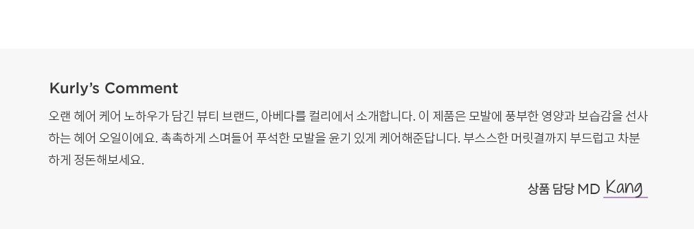 ・특징:푸석한 모발에 풍부한 영양과 보습감을 선사하는 헤어 오일이에요.