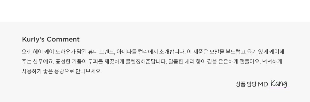 ・특징:모발을 부드럽고 윤기 있게 케어해주는 샴푸입니다.