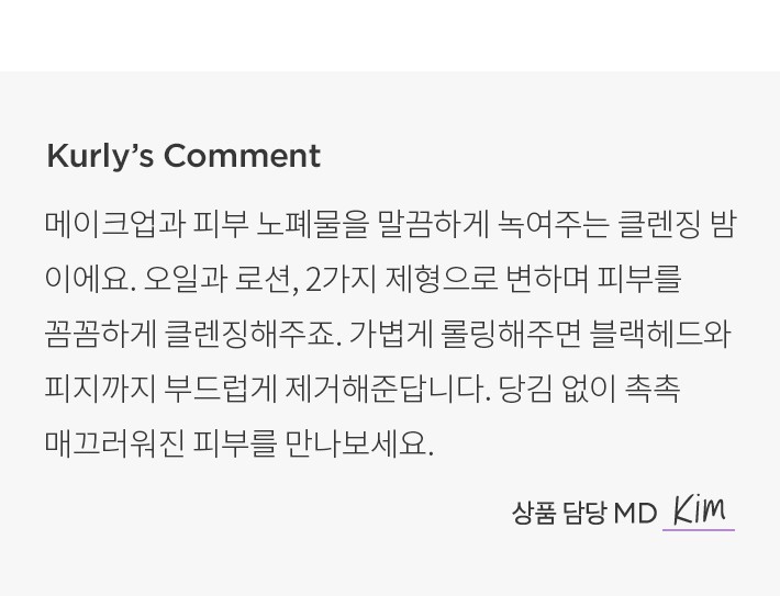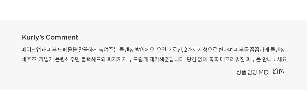 ・사용감:물이 닿으면 로션으로 변하며 피부를 촉촉하게 클렌징해줘요. 미온수만으로도 잔여감 없이 깔끔하게 마무리됩니다.
