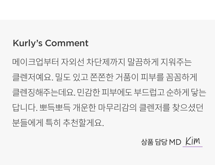 ・특징:메이크업부터 자외선 차단제까지 말끔하게 지워주는 클렌저입니다.