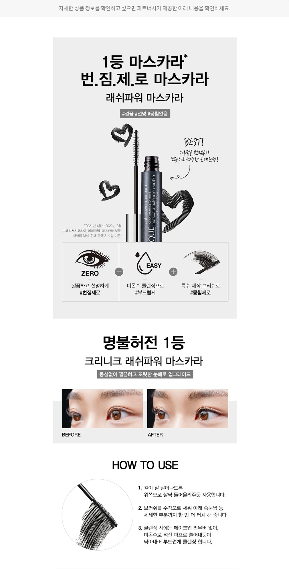 ・특징:뭉침 없이 깔끔하고 또렷한 속눈썹을 연출해줍니다.