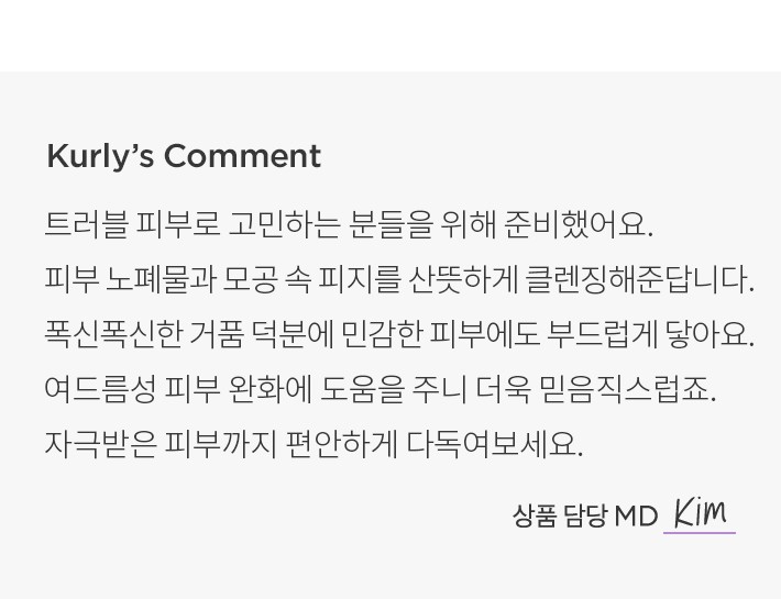・특징:피부 노폐물과 모공 속 피지를 산뜻하게 클렌징해줍니다.
