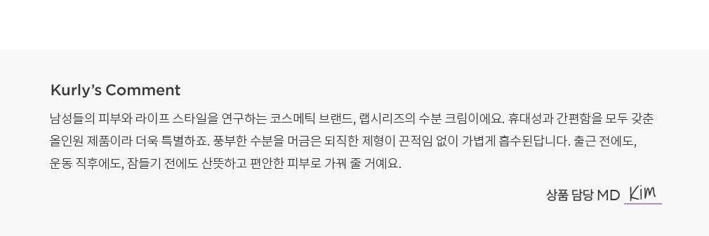 ・특징:지성,복합성 피부에 추천하는 올인원 수분 크림입니다. 주름 개선에 도움을 주는 기능성 제품이에요.