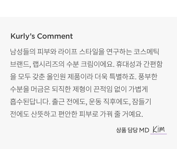 무릇 화장품이란 여성의 전유물로 여겨지던 시절,남성의 피부를 들여다본 선구자가 있습니다. 글로벌 코스메틱 브랜드,에스티로더의 창립자가 바로 그 주인공인데요. 사랑하는 남편과 아들에게 꼭 맞는 화장품을 고민하던 끝에,남성 전문 스킨케어 브랜드 '랩시리즈'를 런칭하게 됩니다. '연구실(Laboratory)'이란 단어에서 따온 이름에 걸맞게 수많은 전문가들이 모여 오랜 시간 남성의 피부만을 연구했지요. 깊은 연구와 첨단 기술의 도입은 탄탄한 제품력과 독보적인 브랜드 정체성 확립을 가능케 했답니다. 지금도 랩시리즈는 전 세계 남성들의 니즈와 라이프스타일을 반영하며 진화하고 있어요.