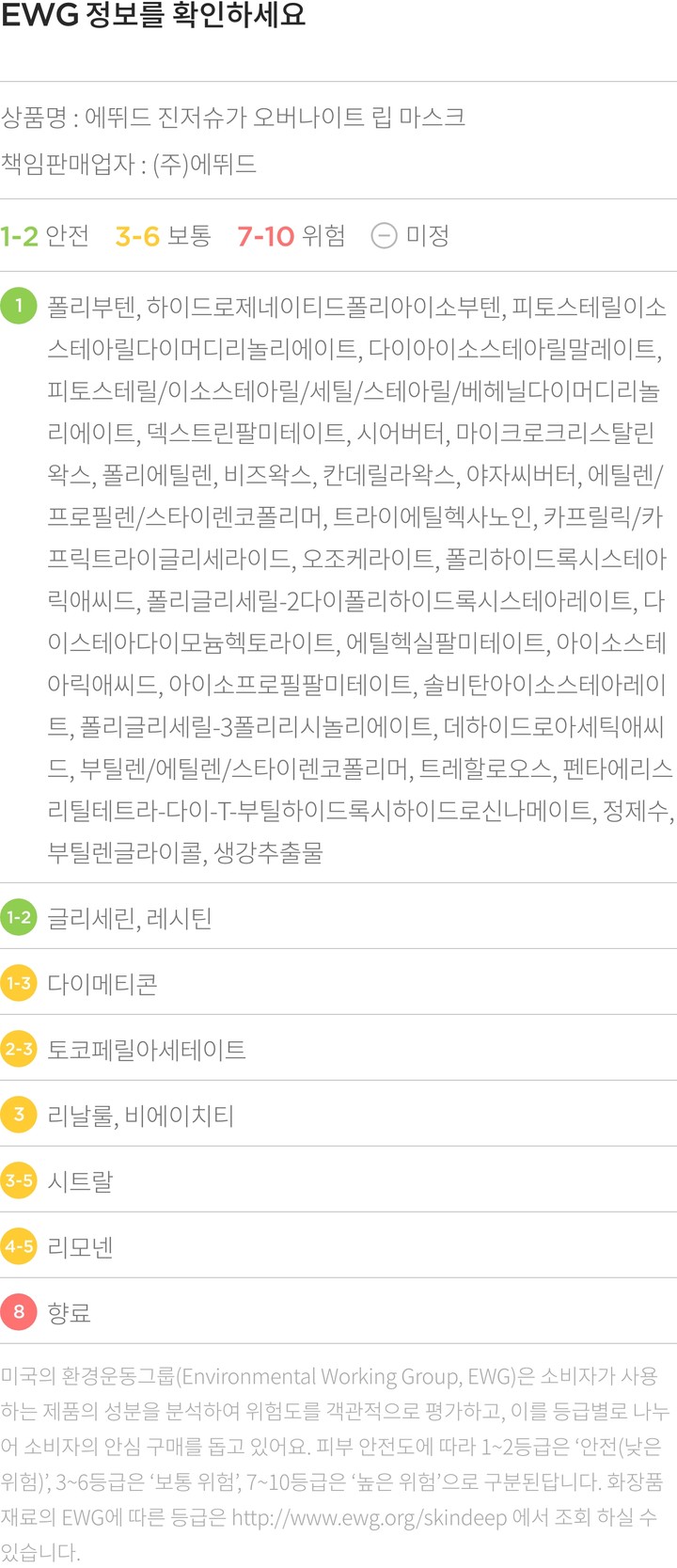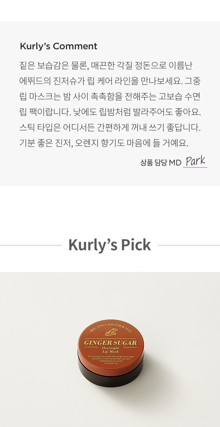 ・ 특징:잠들기 전 듬뿍 바르는 립마스크예요. 낮에도 립밤처럼 사용할 수 있어요.