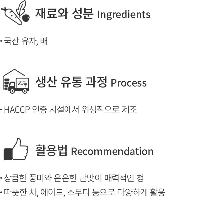 ?유자 차:뜨거운 물 210mL에 유자청 90g을 넣고 잘 섞어 주세요. 취향에 따라 꿀이나 설탕을 더해 즐겨도 좋아요.