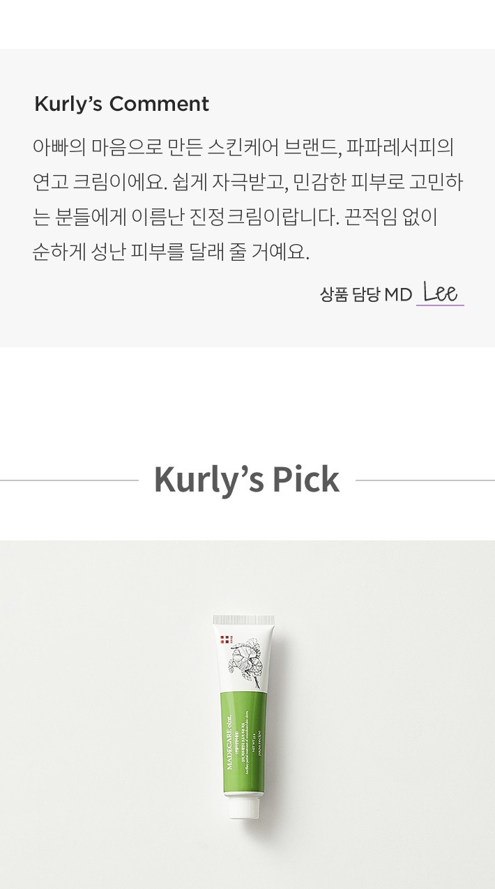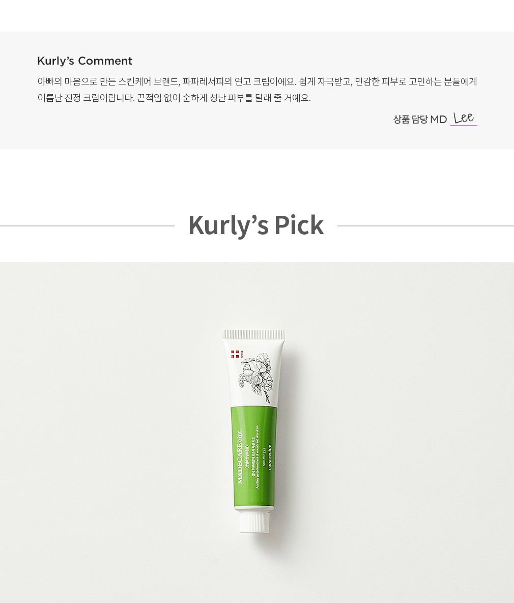 ・ 특징:피부 고민 부위,혹은 얼굴 전체에 사용할 수 있는 의약외품 진정 크림이에요. 물과 열 없이 추출한 센텔라(병풀)정량추출물을 담았어요.