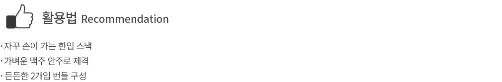 노리마키는 일본어로 ‘김초밥’을 뜻하는데요. 이번에 소개할 미즈호의 노리마키 센베 와사비는 김초밥처럼 쌀 과자를 구운 김으로 돌돌 말아 만든 과자예요. 바삭바삭한 식감은 물론,고소하면서도 짭조름한 맛과 알싸한 와사비 향에 자꾸 손이 가곤 한답니다. 한입에 쏙 넣기 좋은 크기로 만들어서 먹기도 참 편해요. 2개입 번들 구성으로 보내드리니 입이 심심할 때 하나씩 드시거나 시원한 맥주와 함께 즐겨 보세요.