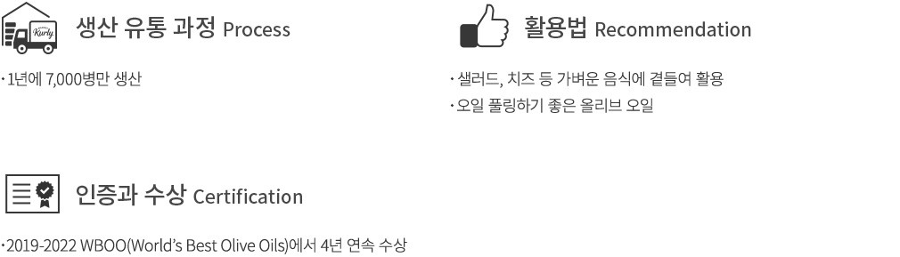 안내사항2 | 산도:0.1% / 올레인산:73~83% / 리놀레산3.5~21%/ 폴리페놀 544mg |