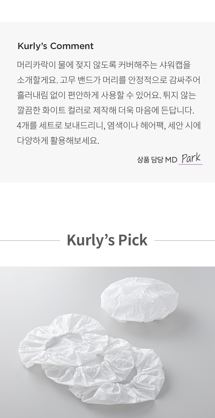 ・ 특징:머리카락이 물에 젖지 않도록 커버해주는 샤워캡입니다.