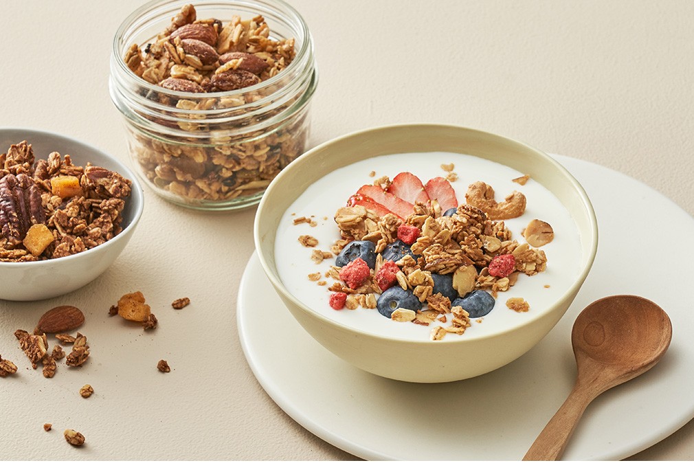 ・활용팁:그릭 요거트에 시그니처 그래놀라를 수북이 얹고 제철 과일을 곁들여 즐겨 보세요. 고소한 곡물 라떼의 토핑으로 활용해도 좋아요.
