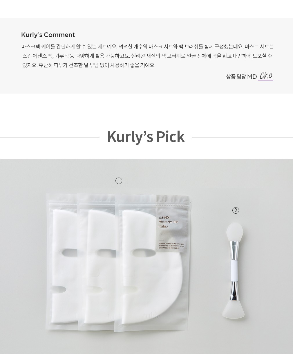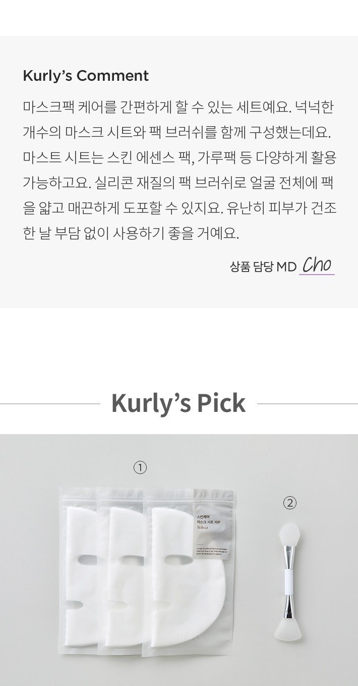 스킨케어 마스크 시트+팩 브러쉬 세트・ 구성:①마스크 시트,②팩 브러쉬