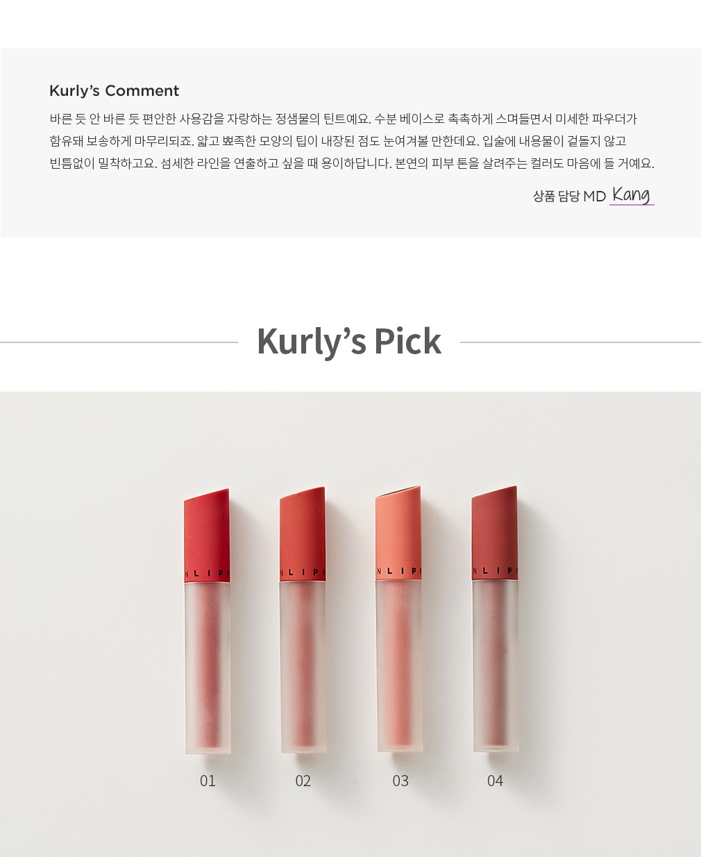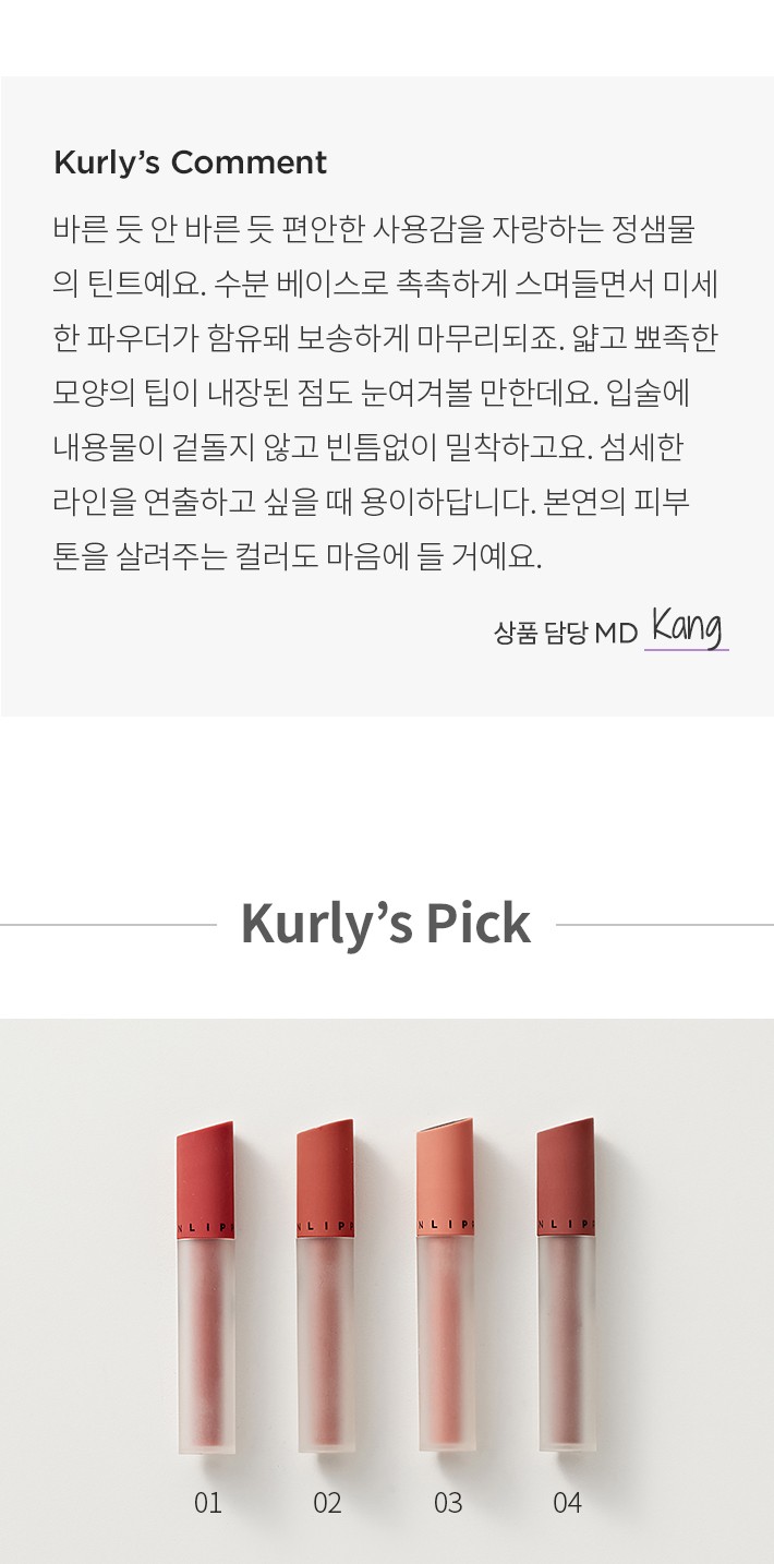 ・ 입술에 도포한 후 손가락이나 립 브러쉬로 톡톡 두드려 마무리해 주세요.