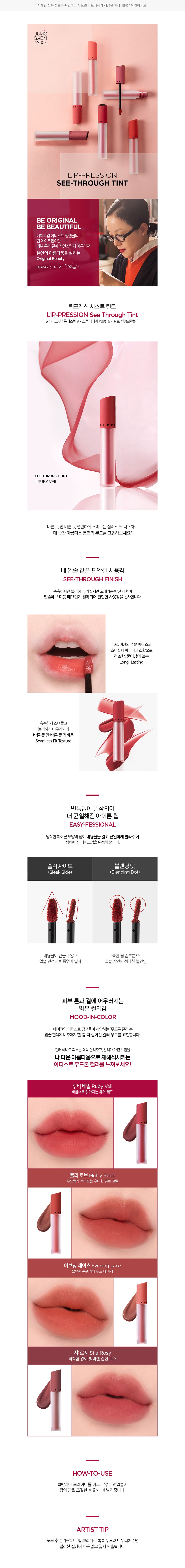 01. 립프레션 시스루 틴트 #루비 베일・ 중량:1개(4g)