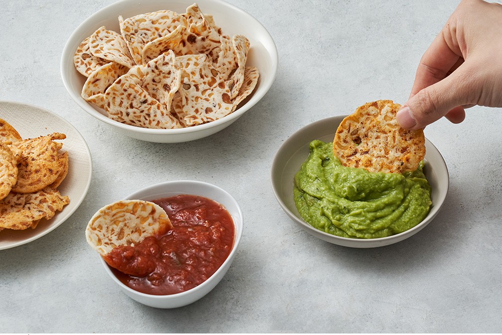 ?특징:칠리 시즈닝을 더해 매콤한 맛을 살린 핫 칠리 템페 칩스예요. 부드러운 과카몰리 또는 새콤한 살사 소스를 얹어 맥주 안주로 활용해 보세요.