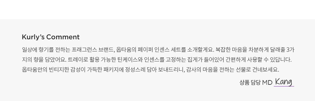 페이퍼 인센스 3종 선물세트・구성:①포레스트 드림,②젠틀 레인,③우디 앤 피치
